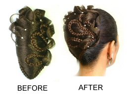 Chignons are artificial hair pieces designed to be attached at the back of your head over your own bun. You will need a rubber band to tie your own hair into a small bun, then put the chignon over it and secure it around with U type hair pins. Any chignon can be supplied in a choice of 7 colours.
