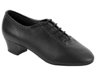 Ladies practice/teaching shoe with 1.5" cuban CUSHIONED heel. Designed for teachers and alikes, who spend many hours on the dance floor. Black leather only. |