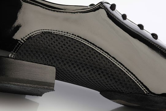 Black patent/mesh. Cushioned heel. Split sole for greater flexibility. Mesh flexi arch with simple stitch design. |