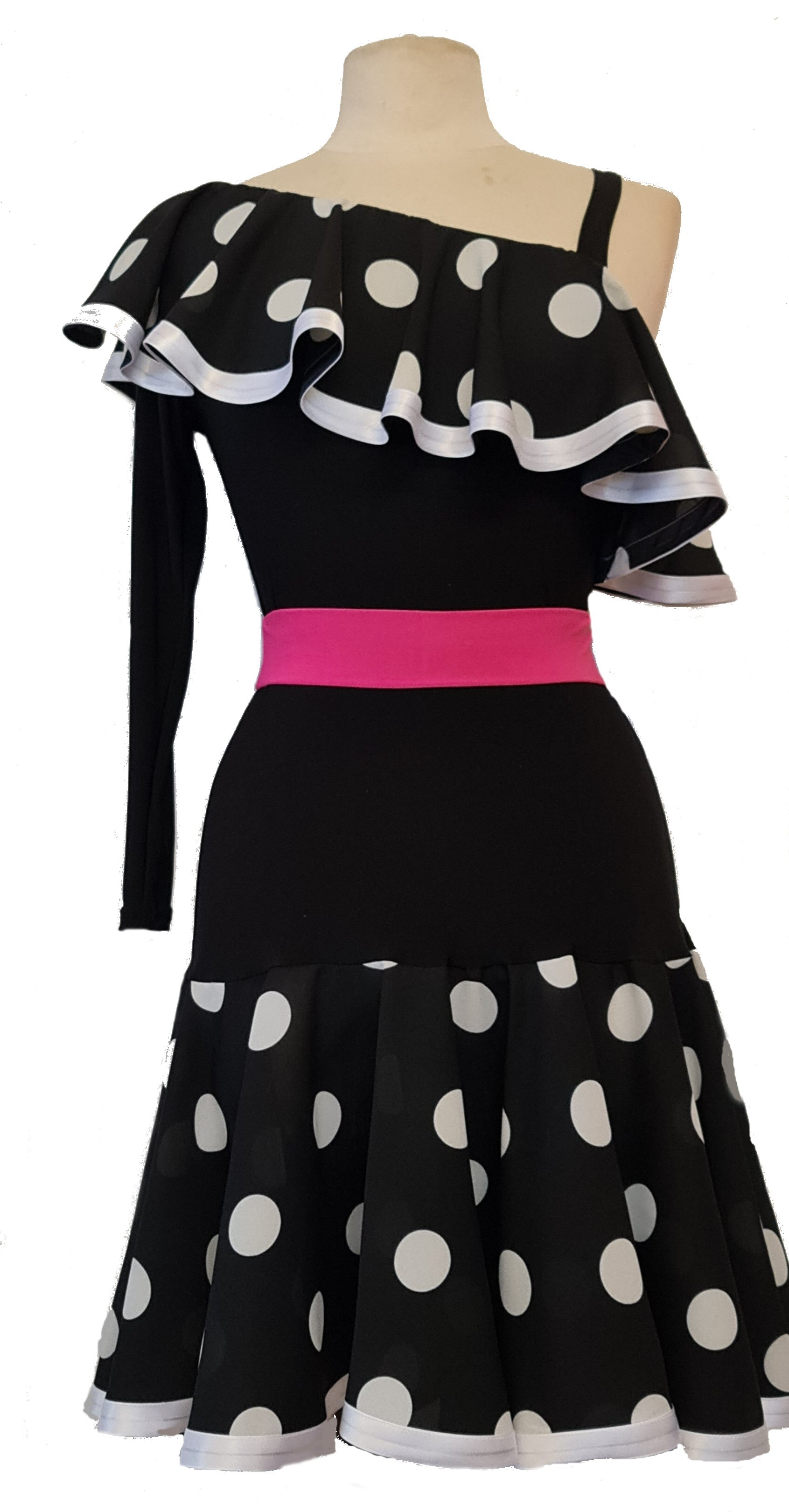 The skirt is made of 6 vertical panels. Its lower part is made with zig-zag line cut,
