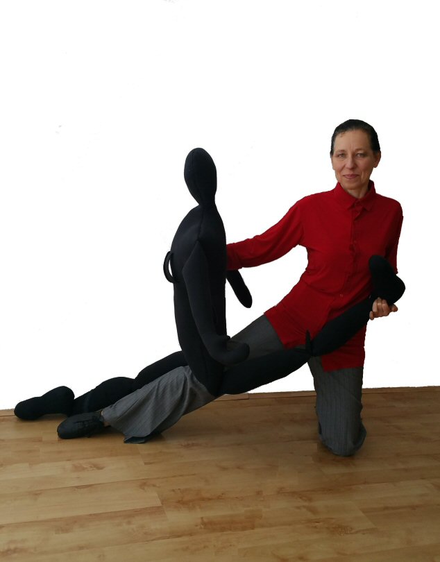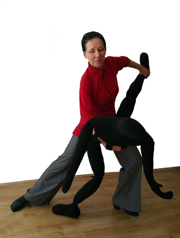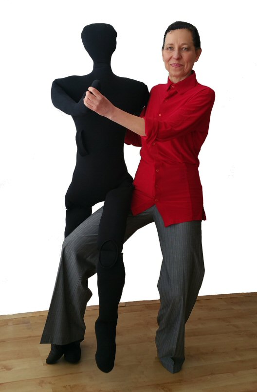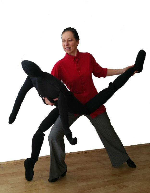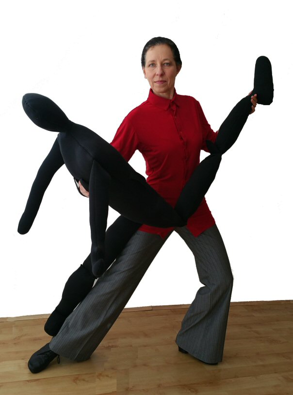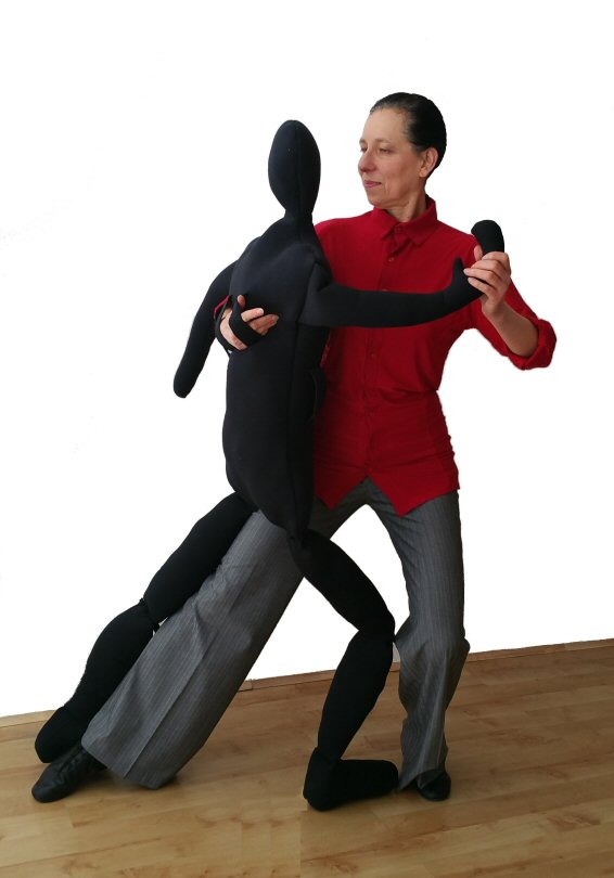 Handy Parter is a soft doll with a heigth of an average female ( 5ft 5in) weighting approx 1.5kg. Its legs bend in hips and in the knees. It allows you to practice your dance moves with a body in the absence of a real partner, but it can also be a useful prop even if you do have a partner.