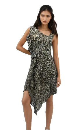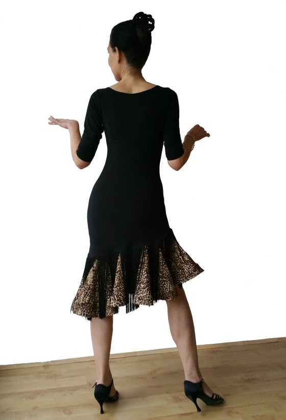 This dress is the same as E-DR091 Simple Ballroom/Latin Practice dress, but the bottom frill is made of animal print with black fringe over.