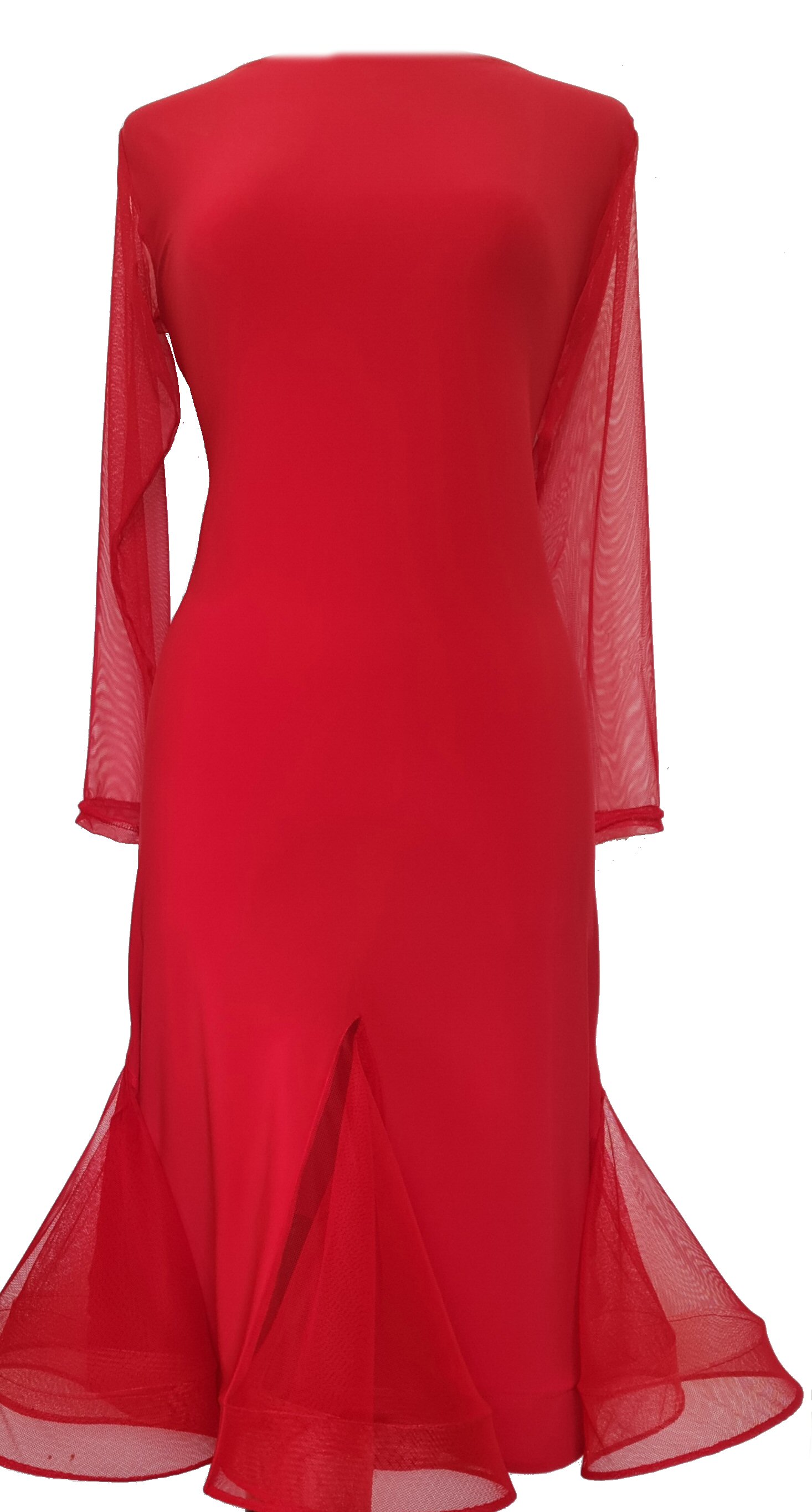 E-DR228FM Open back, Long sleeve Latin dress WITH FLOCK MESH GODETS - Price £90.00 excl.VAT