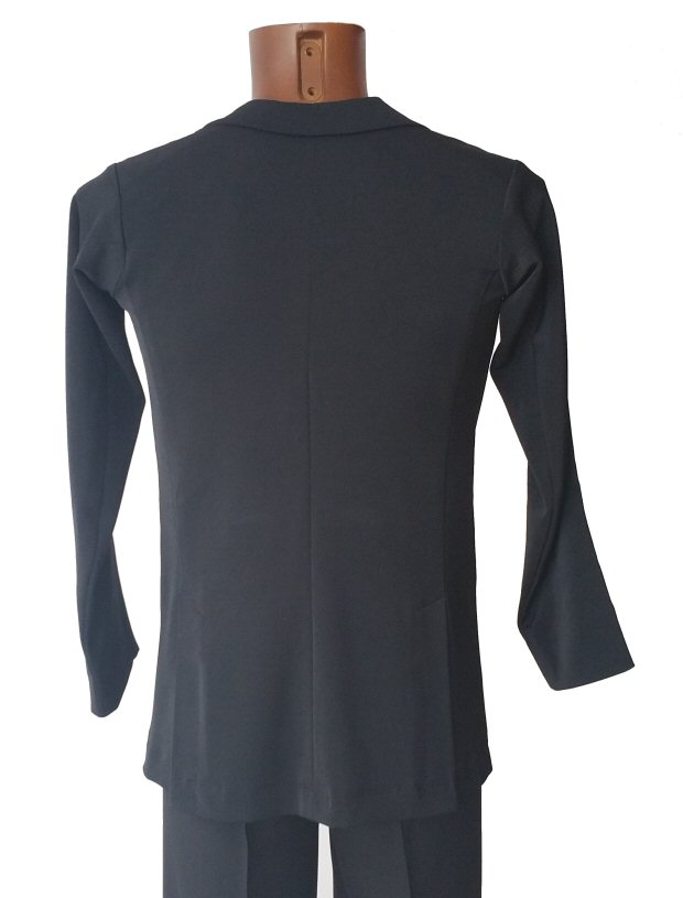 Black pattern single breasted jacket or shirt with a stretch. For a special occasion. Great for latin dancers or party leaders. Special dancers arm cut allows you to keep the arms up for a long time without getting tired. This jacket would typically be worn without a shirt under. The sleeves are normally full length with cuffs (like in a shirt). But on request we can make the sleeves a little shorter and/or without cuffs. You would then be able to wear a shirt and display the ends of shirt's cuffs outside. The jacket will be made to your measurements to ensure good fit. How to measure yourself |