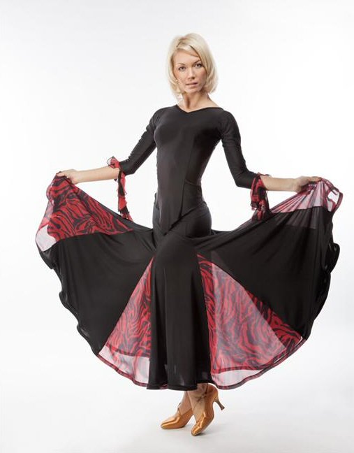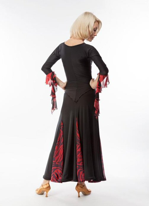 Ladies Ballroom panel skirt. Available in Black/Red flowers georgette and Black/Fantasy pattern. Matches Rina top ( see item above).