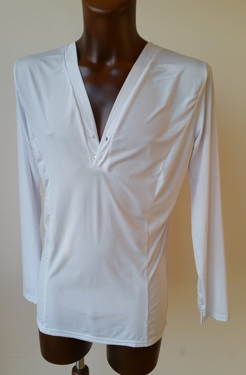Raglan cut, stretchy shirt suitable for both Ballroom and Latin. Single cuff with button. Available in all colours shown on the sampler.